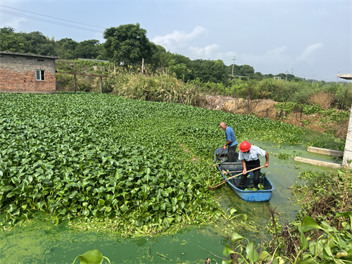 在红林村排灌站,一眼望去,满是水葫芦,红林村采取人工和机械打捞相结合的方式进行清理,并对清理上岸的水葫芦进行集中无害化处理。经过清理,淤塞的河道得以疏通,确保排灌站正常运行。