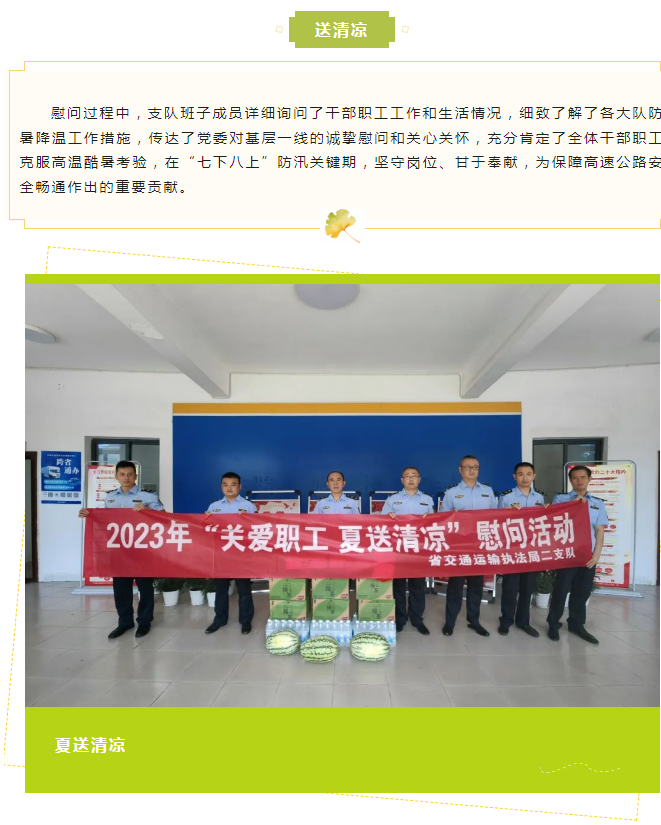 夏日送清凉 关爱沁心脾|二支队开展“关爱职工 夏送清凉”活动