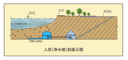 景德镇市焦化能源动力厂净水楼工程布置在昌江河畔的河漫滩地段,其补给水源来自昌江河地表水,其进水头部“只进水、不进砂”的带有矩形喇叭口的进水槽均设置在昌江河床以下7米深处,不受大旱年河流水位下降、洪水季节砂卵石常堵进水头部的影响,水量有保障。净水楼源水经过河床滤层自然过滤,无需任何净化剂处理。通过在净水楼内微量加氯消毒,水质一次性达到国家生活饮用水卫生标准。由于河水通过深层河床砂石慢滤,夏天水温由35℃降到23℃以下,可作为天然冷却水使用,并可避免上游人为污染源对水质的影响。