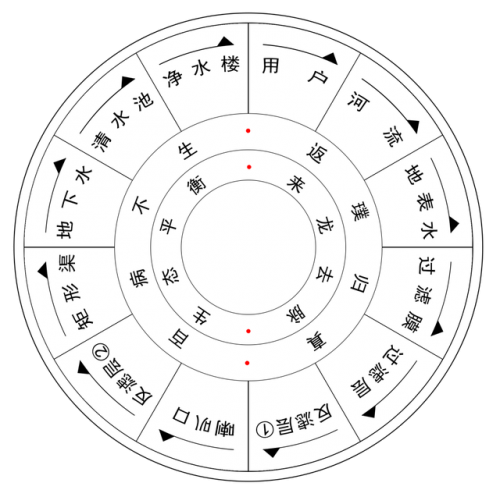净水楼是与沉井、矩形渗渠共同贯通的构筑物。一座净水楼相当于一座现代化自来水厂。净水楼的平面布置均设在江河岸边漫滩地段,不占农田,不占地。净水楼的净水工艺是由沉井、清水池、矩形渗渠等组成的系统工程,无须任何净化药剂处理。净水楼净水原理利用第四系含水层反渗透原理,渗透长度在6至7米后可达到直饮水要求,地表水在与岩石长时间的摩擦过程中,产生对人体有益的多种微量元素,妥妥的营养活水。