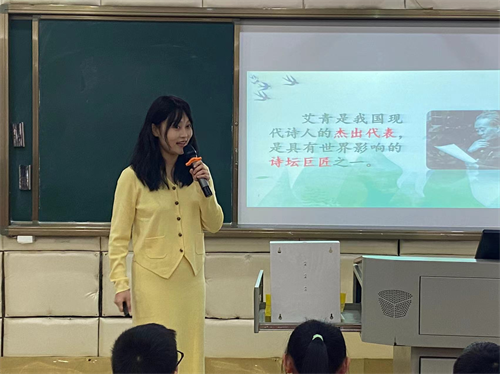 邵盼盼老师选择了现代诗《绿》为授课内容,积极营造诗歌学习的情境,以读促悟,把品味赏析的机会给予学生,引导学生感受诗歌的语言魅力和诗人的奇特想象,体会诗歌蕴含的丰富情感。通过学习这首现代诗,同学们都渴望拥有一双发现美的眼睛,去欣赏这个美丽的世界。