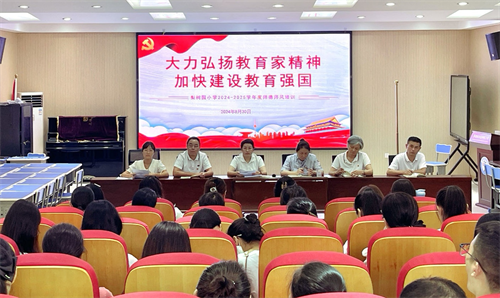 校党总支书记范玉红带领全体教师学习《中共中央 国务院关于弘扬教育家精神加强新时代高素质专业化教师队伍建设的意见》,并强调在第40个教师节即将来临之际,要求全体教师要躬耕教坛,大力弘扬教育家精神,为人师表,发挥示范引领作用。