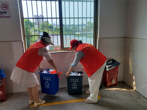 除了教室内部,校园楼道的垃圾桶也是此次清理行动的重点之一。党员教师们手持清洁工具,对楼道内的垃圾桶进行了全面清理,不仅清除了垃圾,还细心地擦拭了垃圾桶表面,确保校园环境的整体美观。他们的身影在楼道中穿梭,成为了校园里一道亮丽的风景线。