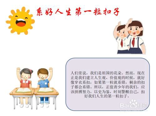 人生,犹如一幅绚丽多彩的画卷,等待着我们去描绘;人生,又似一段充满未知的旅程,需要我们去探索。而在这漫漫人生路上,我们要面对无数的选择和挑战,如何迈出坚实的第一步,如何系好人生的第一颗纽扣,至关重要。通过这次主题的学习,我们不仅探讨了“系好人生的第一粒纽扣”的深层含义,还鼓励学生们重视人生的起点,珍惜当下,勇于尝试,争做新时代的好少年。