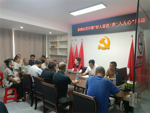 为充分发挥道德模范、身边好人榜样引领作用,形成学习、崇尚、争当道德模范、身边好人的浓厚氛围。近日,吕蒙街道豪德社区开展“好人宣讲‘声’入人心”宣讲活动,加强社区居民群众的思想道德建设和精神文明建设。