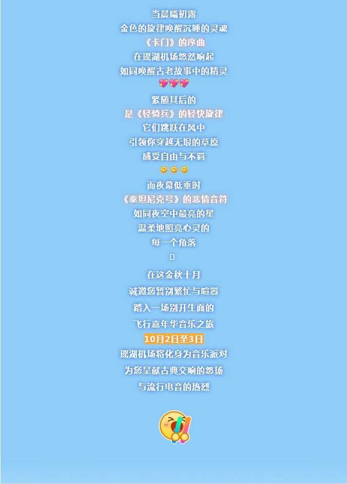 这个国庆,在瑶湖机场与交响乐来一场高雅“邂逅”!