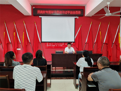 为深入学习贯彻习近平法治思想,进一步发挥党建引领作用,提高党员干部的法治意识和素养,更加深入地理解法治的内涵和要求。近日,吕蒙街道历尧村委会在辖区内组织开展了学习习近平法治思想的专题学习活动。