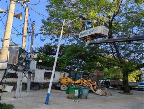 次日一大早,金桥村委会工作人员就携带路灯、电线和维修人员到标记点位,对不亮的路灯逐一进行维修和更换。