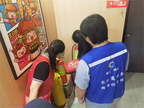 社区工作人员、志愿者及网格员重点检查商铺的灭火器是否过期,电动车销售点是否存在电动车违规停放占用堵塞消防通道、私拉乱接电源线给电动车充电、消防器材是否完好。针对检查中发现的问题,社区积极劝导商户立即整改,加强日常消防管理工作,提高火灾防范意识。