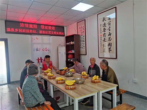2024年10月11日,在重阳节到来之际,朝阳社区文明实践站组织志愿者在社区颐养之家为社区里老人准备丰盛的午餐,为老人们送上最真挚的祝福和关爱。活动中,志愿者和老人们聊着天,拉着家常,现场不时传出阵阵欢笑声。