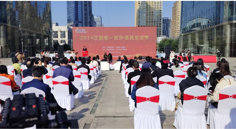 10月25日上午,“2024江西省一刻钟便民生活节”启动仪式在南昌市红谷滩区绿地中央广场举行。江西省商务厅党组成员、副厅长梁小康,南昌市委常委、副市长安宝军出席活动。各设区市商务主管部门负责同志,南昌市各区(县)政府、开发区管委会、湾里管理局分管负责同志,省内老字号、家电、汽车、商超、餐饮等企业代表,以及其他相关企业代表、居民代表和新闻媒体记者参加活动。