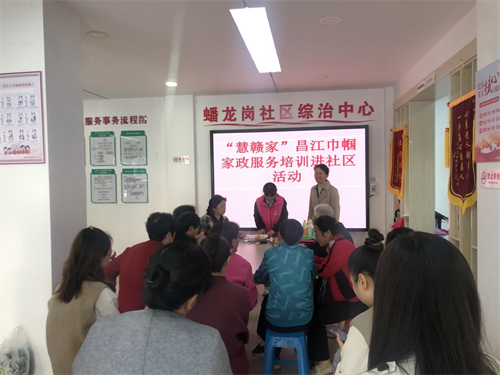 为深入学习贯彻党的二十大精神和习近平总书记关于家政服务的重要指示精神,推动家政服务和社区妇女工作互融互促。11月8日,西郊街道蟠龙岗社区联合“慧赣家”巾帼家政开展“巾帼家政进社区 点亮妇女就业之光”活动。