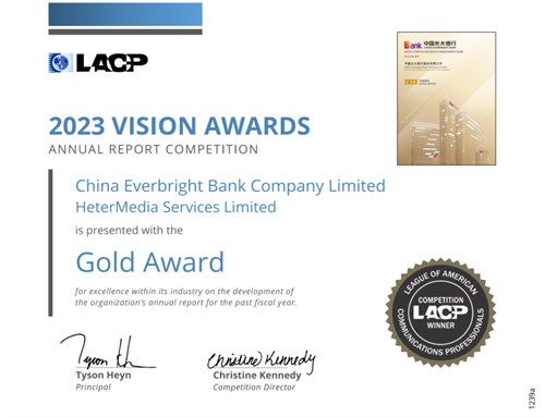 近期,国际媒体专业联盟(LACP)年报大赛(Vision Awards)揭晓评选结果。光大银行2023年年报在LACP 2023 Vision Awards国际年报大赛中荣获金奖、全球前100名报告、亚太地区前100名报告、中文50佳报告、技术成就奖等多项荣誉,体现出专业机构对光大银行年报竞争力的高度认可。