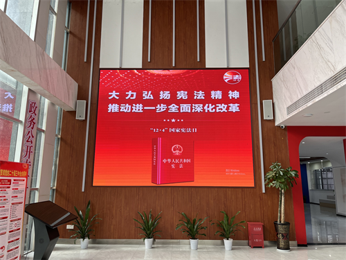 其次,以“法治融屏”的形式在辖区范围内开展。要求街道全体干部积极参与宪法知识网上竞答活动,在各村(居)通过播放宪法宣传片、宪法主题游走字幕等形式来学习普及宪法知识。