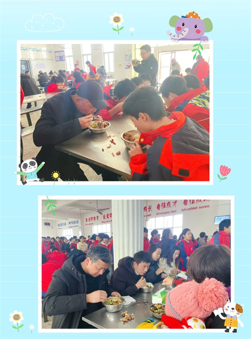 有一种爱叫“陪伴”,还有一种爱叫“陪餐”。 为了让家长全面了解学生在校就餐情况,推动学校食堂管理更加科学化、规范化,2024年12月11日上午,都昌县教育科学研究中心校外活动股徐平主任一行来到鸣山乡中学进行督学检查,并与9名家长及鸣山乡人大代表、村委会干部,共同走进校园、进行陪餐活动。学生食堂家长“开放日”暨家长陪餐活动的实施,体现了学校对校园食品安全的重视,能够充分保证孩子“舌尖”上的安全。鸣山乡中学党支部书记、校长但宝华全程陪同。