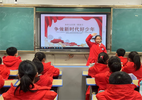 为进一步落实立德树人根本任务,培养德智体美劳全面发展的社会主义建设者和接班人,进一步宣传展示、学习弘扬新时代好少年的良好品德和时代风貌,12月11日下午,梨树园小学开展了“扣好人生第一粒扣子 争做新时代好少年”的教育主题班会。