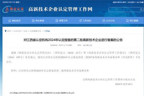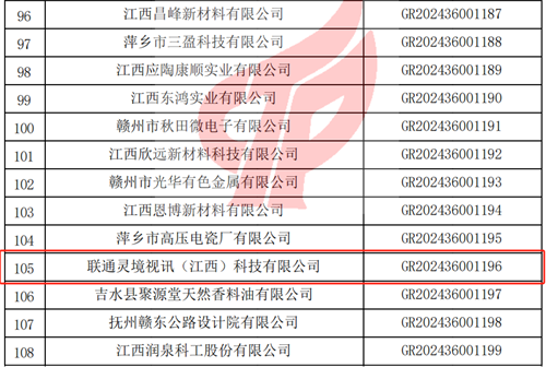 近日,江西省2024年认定报备的第二批高新技术企业备案名单正式公布,联通灵境视讯(江西)科技有限公司顺利通过公示期位列其中,荣获国家“高新技术企业”认定。能够成功通过认定,是对联通灵境视讯(江西)科技有限公司在技术创新、研发实力以及综合竞争力等各个方面的高度认可。