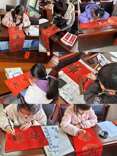 活动现场,几十名青少年书法爱好者齐聚一堂,他们个个神情专注,铺纸研墨,手握毛笔,楷、行、隶、篆等各种书体尽显风采,他们于大红色的七言、九言对联纸上翩翩起舞,写下了一幅幅对仗工整、寓意吉祥的迎新春等对联;“有情红梅报新岁,得意桃李喜春风”,字体端庄稳重,笔画粗细均匀,传达了对新年的美好祝愿;“时逢盛世万家兴,春满神州千里秀”,笔锋刚劲有力,行笔流畅自如,不仅描绘了春天的美丽景象,更表达了对祖国繁荣昌盛的美好祝愿;每副作品虽风格各异,但都笔法娴熟、刚劲有力,都展现出了青少年们对书法艺术的独特理解与感悟。