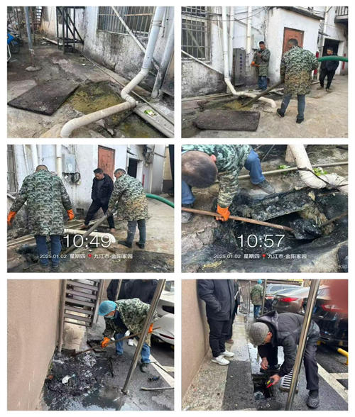 为此,社区联系专业清掏人员,第一时间赶到现场查看化粪池和污水管道的具体情况,查找漏溢的原因。经排查,堵塞的原因是化粪池内的杂物、油污将化粪池和污水管道的流通口堵死。查明原因后,经过清理清掏化粪池的杂物,生活垃圾,并对周围的环境卫生进行清扫,下水道通畅了,也确保居民群众安全出行,居民内心也舒畅了。