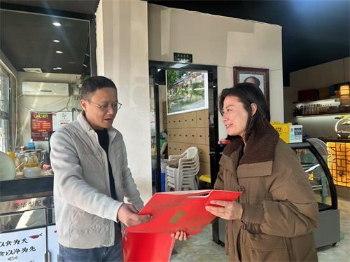 在新春佳节即将到来之际,吕蒙街道官庄村干部积极行动,开展了一场别开生面的走访活动。村干部深入辖区内的个体商户,征求关于营商环境的宝贵建议和问题反馈,并提前送上了新春的诚挚祝福,以及寓意吉祥的新年台历和精美小礼品,以实际行动表达了对商户们的关怀与支持。
