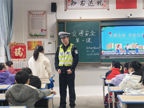 为增强学生的交通安全意识,筑牢校园安全防线,2月14日,景德镇市交警二大队鱼山中队民警叶康走进景德镇市第四小学,为四年级1班学生带来了一堂生动有趣的《交通安全第一课》,通过知识讲解、互动问答等形式,引导学生“知危险、会避险”。