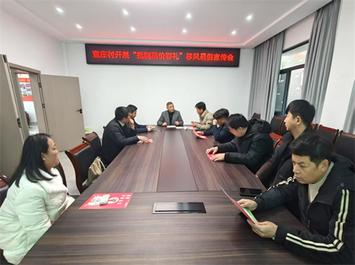 官庄村召开了一场别开生面的宣讲会,会上,村领导详细介绍了高额彩礼的危害以及铺张浪费对社会风气的不良影响,并呼吁广大村民自觉抵制高额彩礼,倡导简约、健康的婚礼形式。宣讲内容贴近实际,语言通俗易懂,得到了与会村小组长的积极响应和支持。
