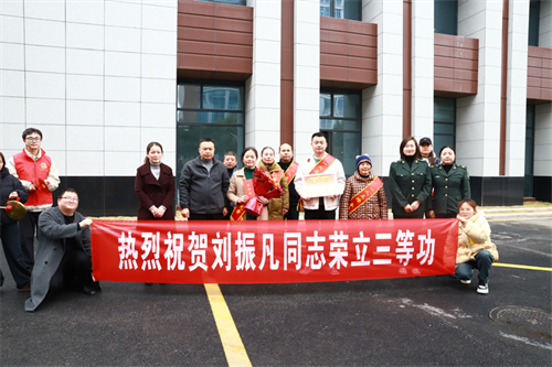 2025年2月14日上午,一心桥社区迎来了一份特殊的荣誉。昌江区退役军人事务局副局长徐烈可,昌江区人武部职工徐晖,西郊街道党工委委员、武装部部长杨欣茹,社会事务办公室主任俞永珍一行,专程来到社区中医院宿舍,为荣立三等功的现役军人刘振凡同志的家属送上喜报,传递党和政府的深切关怀。