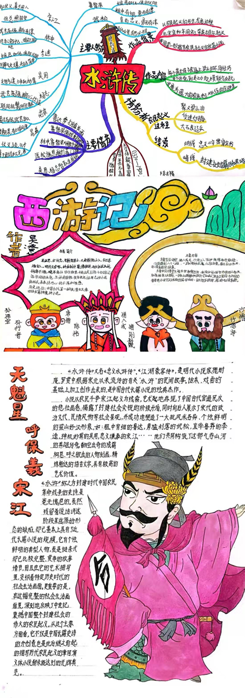 成长不间断,阅读不打烊。五年级的语文寒假实践作业以“跟着名著过新春”为主题, 让孩子们在寒假里阅读中国四大名著,并围绕名著内容和最喜爱的人物以绘手抄报、制作思维导图、成语摘抄、写读后感等形式完成阅读任务,过一个充实且有意义的春节。