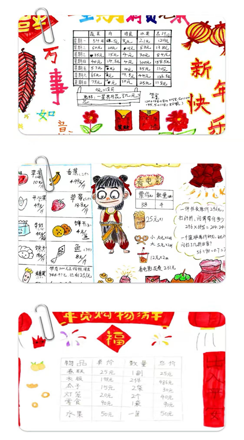 三年级学生通过置办年货的实践活动,将数学知识运用到生活中,提升数学应用能力、社会实践能力,了解传统文化,还能感受春节的欢乐氛围,体验传统文化的魅力!