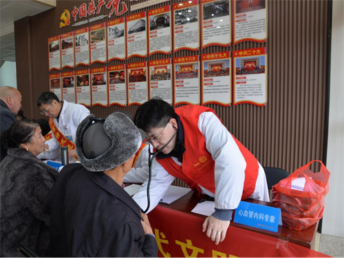 义诊现场人潮涌动,却忙而不乱,现场秩序井然。党员志愿者们身着统一的志愿服装,面带微笑,热情地引导村民们有序排队,耐心解答他们的疑问,细致地协助他们进行问诊。医疗专家团队凭借丰富的临床经验和精湛的医术,为前来咨询的村民们提供了全面的健康检查。从量血压、问诊、把脉到发放药品,每一步都体现了医护人员的细心与专业。专家们根据村民们的身体状况,逐一给出了个性化的诊疗建议和健康用药指导,耐心细致地讲解疾病的预防、调治以及日常保健方法,让村民们受益匪浅。
