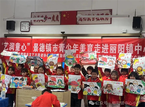 为落实立德树人根本任务,积极推动校园文化建设,景德镇市文化馆、景德镇市文艺志愿者协会、昌江区新时代文明实践中心、昌江区文广旅局、昌江区文化馆推进景德镇市青少年美育走进丽阳镇中心小学,让学生感受文化的魅力,感悟中华民族的精神内涵,引导学生延续文化基因,增强文化自信,厚植爱国主义情感。