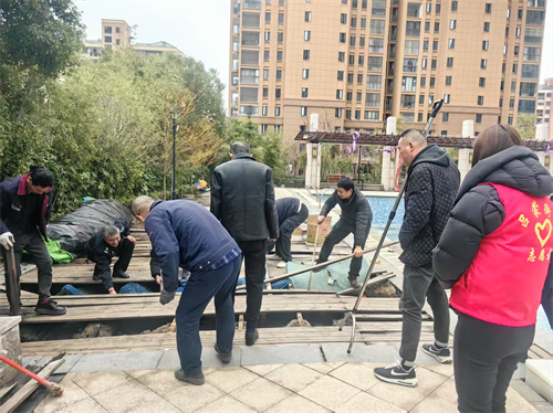 行动前,社区工作人员与小区物业通过实地观察和居民反馈,了解到流浪狗经常在小区内游泳池岸边木板下聚集,不仅对居民尤其是儿童的安全构成威胁,其随地排泄的行为也影响了小区的环境卫生。
