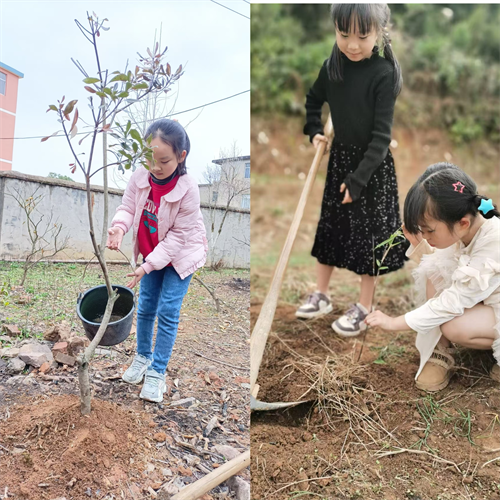 孩子们在家长的陪同下,兴致勃勃地来到植树区域,挥锹铲土、扶苗填坑、提水浇灌……大家分工合作,齐心协力,亲手种下一棵棵小树苗。虽然汗水浸湿了衣衫,但看着自己亲手种下的小树苗在春风中摇曳,孩子们的脸上洋溢着自豪的笑容。