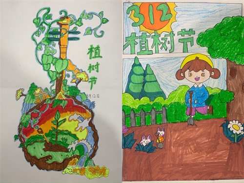 为了更好地宣传植树造林理念,孩子们纷纷拿起手中的画笔,将心中的绿色梦想倾注笔端。他们有的画下了自己亲手种下的小树苗,有的描绘了未来绿树成荫的美好景象,还有的用画笔呼吁大家保护环境、爱护地球……一幅幅充满童真童趣的画作,展现了孩子们对绿色生活的向往和对美好未来的憧憬。