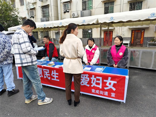 为进一步增强妇女群众法治意识,提升妇女依法维权能力,在“三八”妇女节宣传周,竟成街道法律志愿服务队、竟成街道妇联联合新厂村于3月11日上午在陶阳新村开展了以“法援惠民生 关爱妇女”为主题的我为群众办实事普法宣传活动。