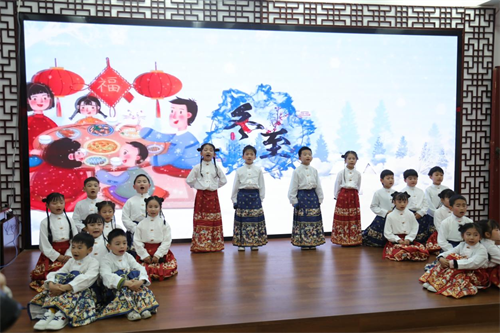 上午九时半,童声演绎的《二十四节气歌》《诗韵四季》揭开活动序幕。童子稚嫩的诵读声如丝丝细雨,将流转千年的平仄韵律,悄然植入校园。