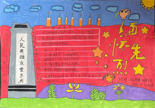 随后的手工制作环节将活动推向了高潮。学生们充分发挥自己的想象力和创造力,精心制作手抄报。他们用五彩的画笔描绘出对先烈的崇敬、对清明的理解,一幅幅手抄报饱含深情,成为孩子们铭记历史、传承文化的独特表达方式。同时,现场还开展了手工制作纽扣粘贴画活动,有的孩子以烈士陵园为主题,用棕色纽扣搭建墓碑,用绿色纽扣点缀周围的草地,表达对先烈的缅怀;有的则绘制了象征希望与新生的春天景象,寓意着在先烈的守护下,如今的生活充满生机。