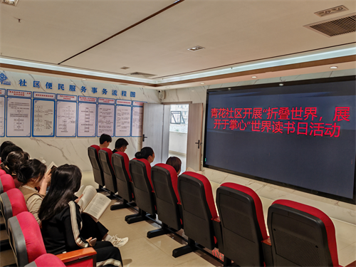 为倡导全民阅读风尚,丰富居民精神文化生活,4月23日,青花社区在新时代文明实践站举办“折叠世界,展开于掌心”主题读书活动,通过创意书展、互动体验、阅读分享等形式,带领居民感受“方寸之间见天地”的阅读魅力。
