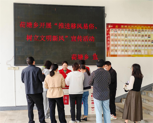 为提升村民文化素质,营造“移旧俗、尚科学、倡新风”的良好氛围,4月28日上午,荷塘乡新时代文明实践所开展“推进移风易俗、树立文明新风”宣传活动。