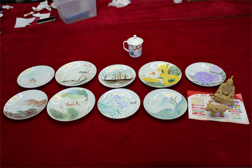 活动现场,艺术家们以瓷为媒、以笔传情,满怀激情、挥毫泼墨,幻化成国风西画交相辉映、时空胜景纵横交错、江山如画花香馥郁、笔墨油彩五彩斑斓的瓷艺世界,闪烁着国画、油画、雕塑等不同艺术门类与陶瓷工艺美术融合的熠熠光辉。党员干部和学生们围在一旁,近距离观看学习,不时发出阵阵赞叹,被陶瓷艺术的独特魅力深深吸引。