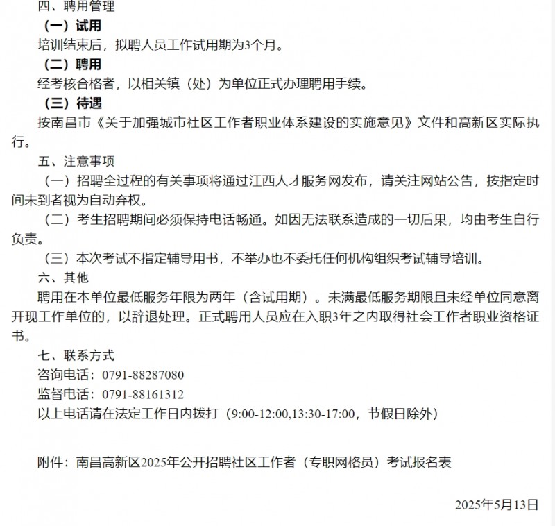 南昌高新区2025年公开招聘社区工作者(专职网格员)公告