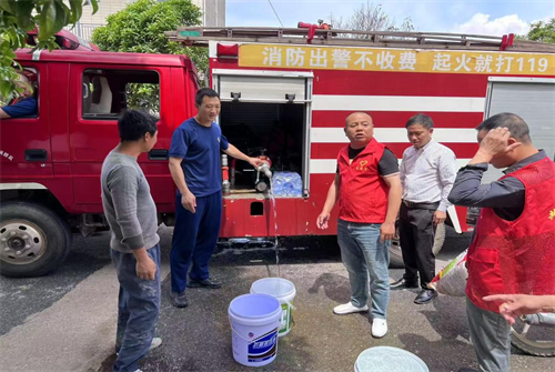 近日,由于自来水管道破裂,导致部分村民无法正常用水。为确保村民的正常生活需求,丽阳镇洪家村迅速行动,村里第一时间向丽阳镇政府汇报,丽阳镇高度重视,立刻组织人员调派水车为受影响的村民送水。