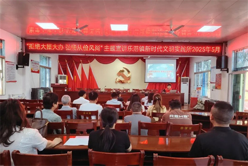 为进一步推动移风易俗,杜绝婚丧嫁娶大操大办、铺张浪费、互相攀比的陋习,树立文明节俭的新风尚。2025年5月19日,乐港镇新时代文明实践所组织开展“拒绝大操大办 弘扬从俭风尚”主题宣讲活动,引导群众自觉破除陈规陋习、树立文明新风。