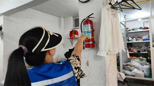 活动中,“唠嗑小分队”队员逐户走访辖区内的小商店、小餐饮场所、制衣厂等“九小场所”。他们对场所内的消防设施配备情况进行细致检查,查看灭火器是否在有效期内、仔细检查电气线路是否存在私拉乱接、线路老化等问题;同时,对场所内货物堆放是否堵塞消防通道等情况进行全面排查。每到一处,队员们都认真记录检查中发现的安全隐患,并现场向商户负责人反馈,提出整改意见。