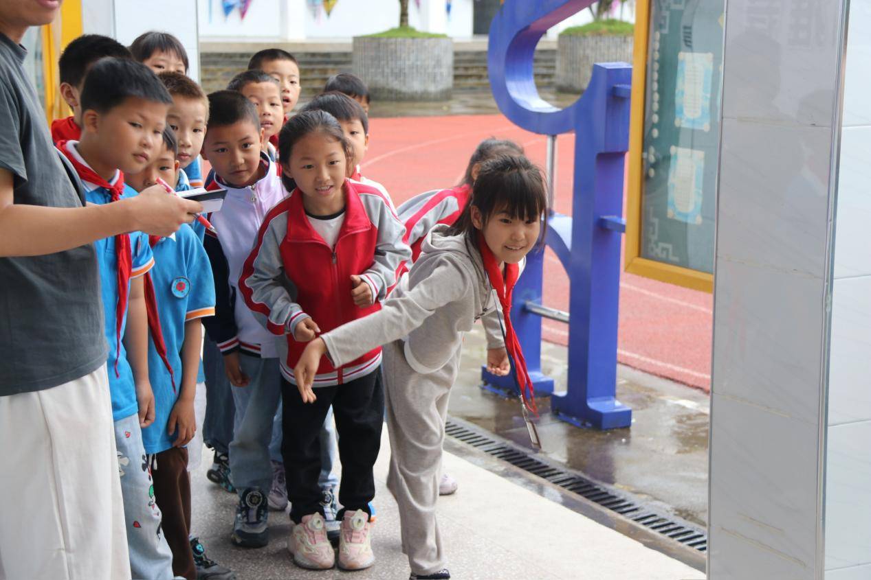 考虑到雨天影响,原定的户外趣味运动会及时调整为室内趣味活动。教学楼里很快布置出一个个温馨的活动场地,志愿者们与孩子们在“二人三足”“旱地冰壶”“百发百中”和“齐心协力”四个趣味游戏中欢乐互动,在欢声笑语中共同体验了团结协作的快乐。小朋友们雀跃地说:“没想到下雨天也能玩得这么开心!”另一边的教室里,一场特殊的“爱眼活动”正在进行。专业验光师一边为孩子们检查视力,一边讲解护眼小窍门。与此同时,金融知识小课堂里不时爆发出阵阵笑声,志愿者通过趣味问答的形式,让孩子们在游戏中掌握了实用的金融常识。