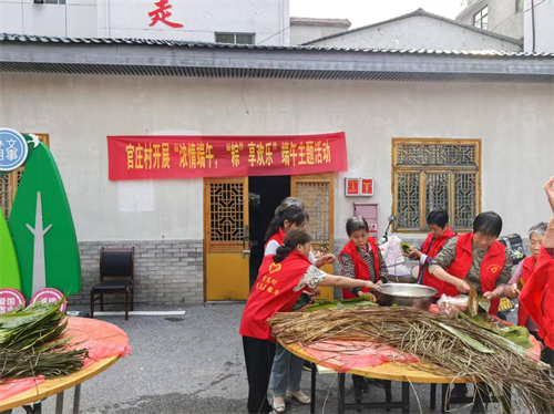 在端午佳节来临之际,为弘扬中华民族优秀传统文化,增进邻里之间的感情,官庄村新时代文明实践站精心组织开展了“浓情端午,‘粽’享欢乐”主题活动,吸引了众多村民热情参与,村委会大院里一片热闹祥和的景象。