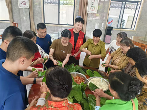 转场至食堂大厅,非遗民俗体验火热开启。糯米、粽叶与消防元素碰撞出创意火花——代际非遗传承:由20位社区包粽能手与消防员结对教学,创新推出"消防车造型粽""应急三角粽"等创意作品,活动现场粽香弥漫,互动笑声不断 。“没想到消防员学包粽子和灭火一样利索!”居民胡阿姨笑着竖起大拇指。