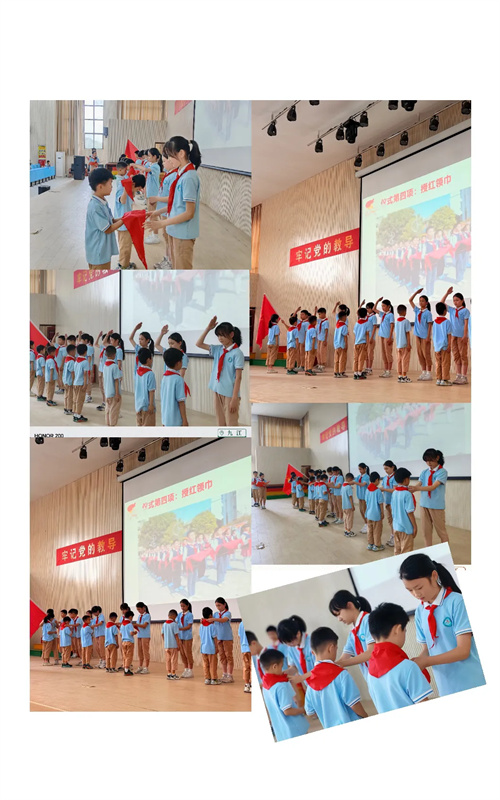 “我们是共产主义接班人……”在胡雨诺同学清脆而嘹亮的领唱声中 ,全体师生齐声高唱《中国少年先锋队队歌》。激昂的歌声在会场上空久久回荡,饱含着孩子们对中国共产党、对祖国、对人民的深切热爱。每一个跃动的音符,都诉说着他们立志努力学习、坚持锻炼,为共产主义事业贡献力量的坚定决心。授予红领巾,铭记成长时刻