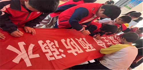 在班主任的带领下,各班学生有序来到横幅前,一笔一划写下自己的名字。每一个名字都承载着对生命的承诺,彰显着对防溺水安全的重视。同学们神情专注严肃,深切意识到防溺水既是对自己负责,也是对家庭和社会负责。