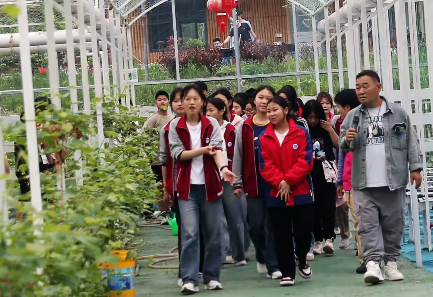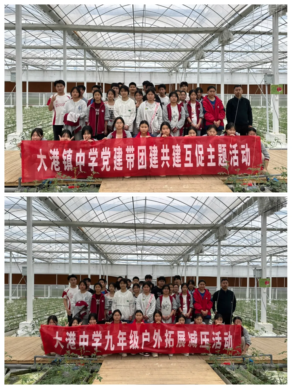 在一个清风和煦的下午,大港镇中学九年级三班全体学生踏上了前往大港梅溪村现代农业产业园之旅。此次活动以“党建带团建,共建互促”探索现代农业 为主题,旨在通过沉浸式体验,引导学生亲近乡土文化、学习科技农业知识,通过劳动教育,使学生牢固树立劳动最光荣、劳动最崇高、劳动最伟大、劳动最美丽的观念。